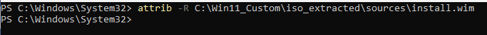 attrib -R C:\Win11_Custom\iso_extracted\sources\install.wim
